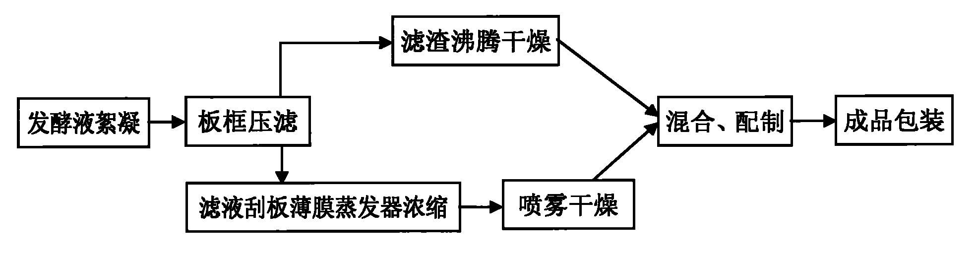 本发明涉及一种黄霉素的后处理方法。黄霉素是磷酸多糖类抗生素,主要用于促进畜禽生长。目前常用的黄霉素后处理生产工艺是采用发酵液直接喷雾干燥的方法制造黄霉素预混剂,生产工艺能耗大,周期长,收率低。本发明采用在黄霉素发酵液中加入磷酸氢二钠和氯化钙溶液使其絮凝而后挤干,湿渣沸腾干燥,滤液刮板薄膜蒸发器浓缩后喷雾干燥,然后混合配制并包装。从而大大降低能耗,缩短生产周期,提高收率。