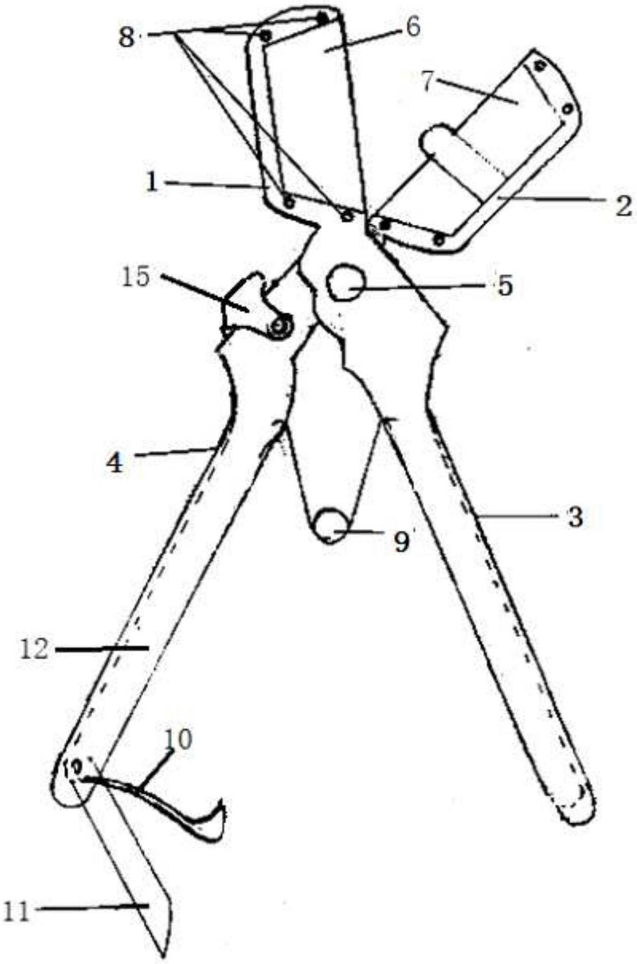 本实用新型提出了一种多功能苗木嫁接刀,包括上剪刀架、下剪刀架、上手柄、下手柄、上刀片、下刀片、环割刀和切割刀;上剪刀架与上手柄一体连接,下剪刀架与下手柄一体连接,上手柄和下手柄通过铰接轴铰接;上剪刀架上设有可拆卸的上刀片,下剪刀架上设有可拆卸的下刀片,下刀片上设有自刀刃向刀背方向延伸的U型槽,且U型槽的深度自刀刃向刀背方向逐渐变小;上手柄或下手柄的尾部铰接有环割刀和切割刀,上手柄或下手柄的内部设有容纳环割刀和切割刀的收纳槽。该多功能苗木嫁接刀结构简单,兼具切割刀、环割刀、枝剪和嫁接刀于一体,且刀片可拆卸更换。
