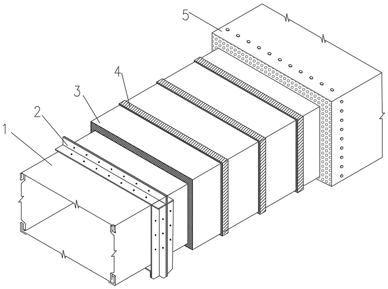 本实用新型公开了一种具有降噪保温功能的风管结构,属于建筑风管技术领域,包括风管、吊环、隔声层、定位条和保温层;所述吊环间隔设置在风管上,并与风管支吊架连接;所述隔声层贴合风管表面设置;所述定位条间隔套设在隔声层外侧;所述保温层粘贴在隔声层上,并通过保温钉与定位条固连。本实用新型通过在隔声层外侧间隔设置定位条,能够在固定隔声层的基础上,为保温层提供固定连接点,实现隔声层和保温层的同时稳定安装;吊环外侧垂直设置立板,且立板外端高于保温层的外端,能够保证与风管支吊架的连接;结构简单,便于施工,且安装效果牢固,能够提升施工效率。