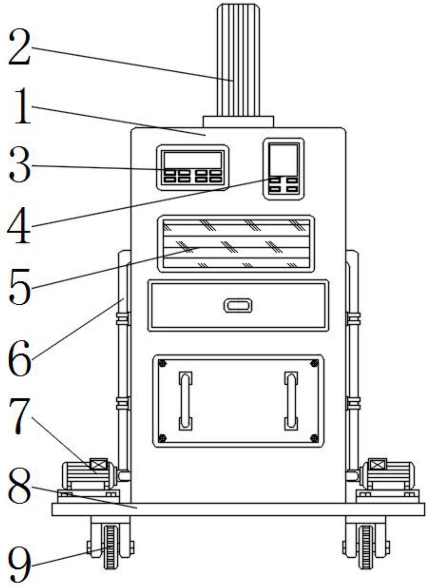 本实用新型公开了一种红茶均匀高效烘干兼清洗装置,包括箱体、保护箱和水箱,所述箱体的表面固定安装有温度检测器,所述箱体的顶部固定安装有液压推杆,所述保护箱的内部固定安装有电机,所述固定板底部的两侧固定安装有加热板,且滑轨之间活动安装有镂空盒,所述镂空盒顶部的箱体内部两侧固定安装有喷头,所述镂空盒底部的箱体内部固定安装有滤网,所述滤网底部的箱体内部固定安装有水箱,且水箱两侧的箱体两侧表面固定安装有水泵。本实用新型通过设置有一系列的结构使本装置在使用的过程中能够自动的对红茶进行清洗,并且可以均匀高效的对其进行烘干,同时方便工作人员进行红茶的存取工作,增加装置的实用性。