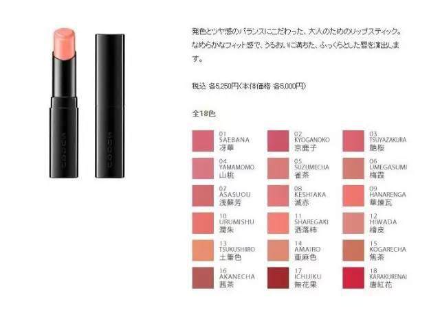 当然SUQQU家绝对不止眼影,他们家唇膏的滋润度啊显色啊都非常棒!名字也非常可爱:冴华、京鹿子、艳樱、唐红花等等,光是冲着名字都想买一支啊。